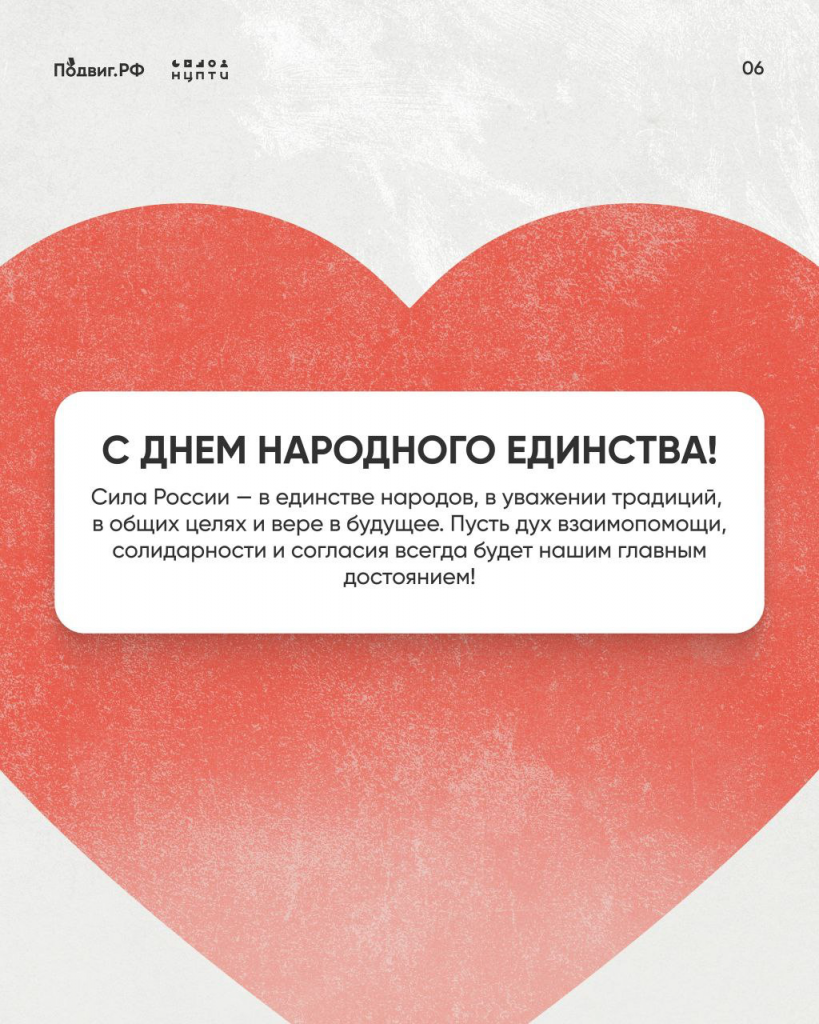 На протяжении веков Россия росла и развивалась благодаря взаимному уважению. Сегодня это многообразие — не просто факт, а ценность, закрепленная в Конституции и подтвержденная историей.Поздравляем с Днем народного единства! Нельзя забывать историю своего народа и предков, ведь именно она сделала нас такими, какие мы есть сейчас.