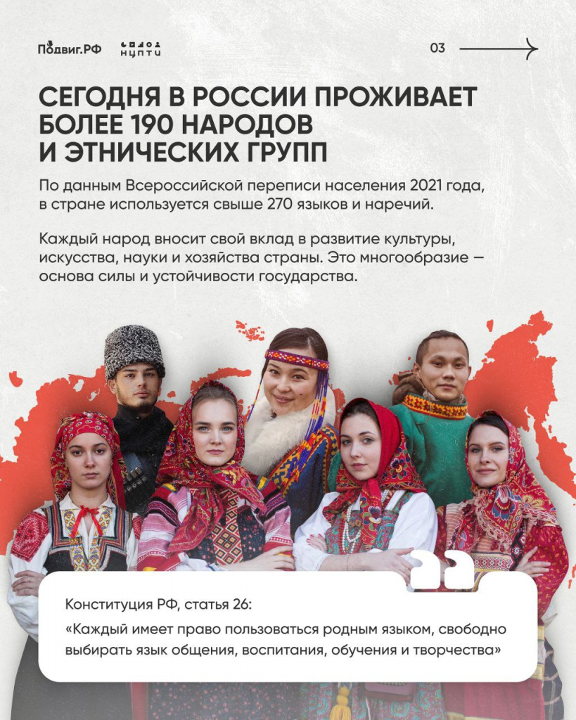 Наша страна по-настоящему уникальна: 190 народов, сотни языков, десятки религий и общее чувство Родины.
